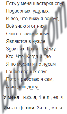 Прочитай отрывок из стихотворения Р. Киплинга в переводе С. Маршака. О каких слугах идёт речь? Каким местоимением заменяет автор слово слуги? Спиши, найди и обозначь знакомые орфограммы. Подчеркни местоимения.