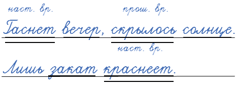 Гаснет (наст. вр.) вечер, скрылось (прош. вр.) солнце,