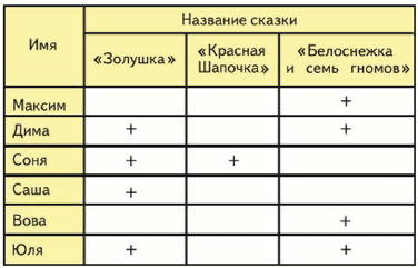 Число отмеченных знаком "+" сказок больше, чем число опрошенных детей, потому что некоторые ребята любили слушать больше, чем одну сказку.