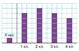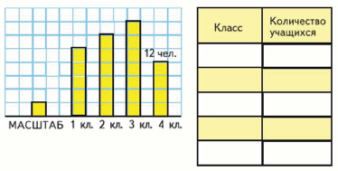 4 столбик состоит из 4 клеток и нам известно, что в 4 классе - 12 человек. Значит, масштаб рисунка 12 : 4 = 3 человека.