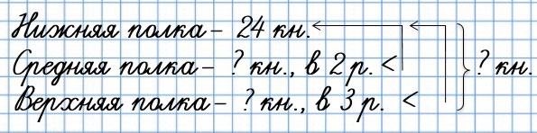 83. На трёх полках стоят книги. На средней полке книг в 2 раза меньше, чем на нижней, а на верхней - в 3 раза меньше, чем на нижней. Сколько книг на трёх полках, если на нижней полке 24 книги?