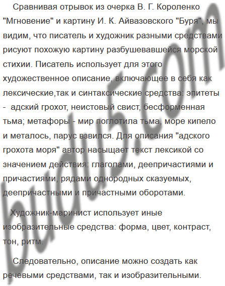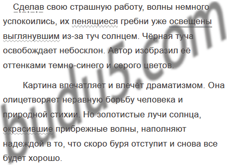 1. Рассмотрите на вклейке (с. 16) репродукцию картины Ивана Константиновича Айвазовского (1817—1900) «Буря» (1840). Объясните, как вы понимаете название картины. Сравните картину и текст предыдущего упражнения. Какими изобразительными средствами пользуются писатель и художник-маринист? Сделайте вывод.