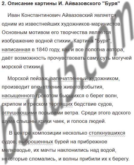 2. Опишите картину И. Айвазовского. Чтобы точнее и образнее передать состояние морской стихии, используйте глаголы и глагольные формы, особенно причастия и деепричастия.
