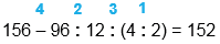 156 - 96 : 12 : (4 : 2) = 152