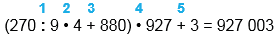 1) 150 : 3 = 50 2) 850 + 50 = 900 3) 900 - 70 = 830 4) 830 + 17 = 847 | |||||||||||||||||||
