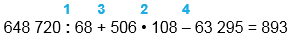 648 720 : 68 + 506 • 108 - 63 295 = 893