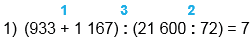 34. 1) Во сколько раз сумма чисел 933 и 1 167 больше частного чисел 21 600 и 72?