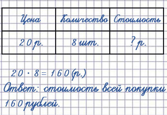 Купили 8 тетрадей по цене 20 р. Какова стоимость всей покупки?