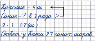 У Кати 9 красных шаров, а синих в 3 раза больше. Сколько у Кати синих шаров?