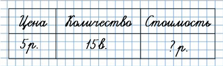 1. Купили 15 вещей по цене 5 р. Какова стоимость всей покупки?