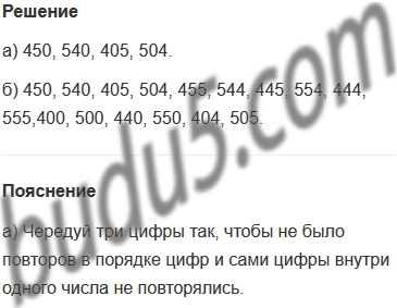 Задание № 10. Составь все трёхзначные числа, записанные с помощью цифр 4, 5, 0, если известно, что цифры в записи числа: а) не повторяются; б) могут повторяться.