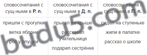 Раздели словосочетания в три группы по падежу существительных: