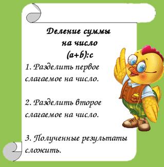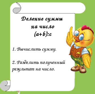 Чтобы разделить сумму на число, можно вычислить сумму и разделить её на число или разделить на число каждое слагаемое и полученные результаты сложить.